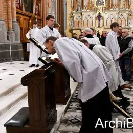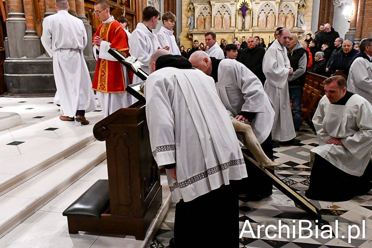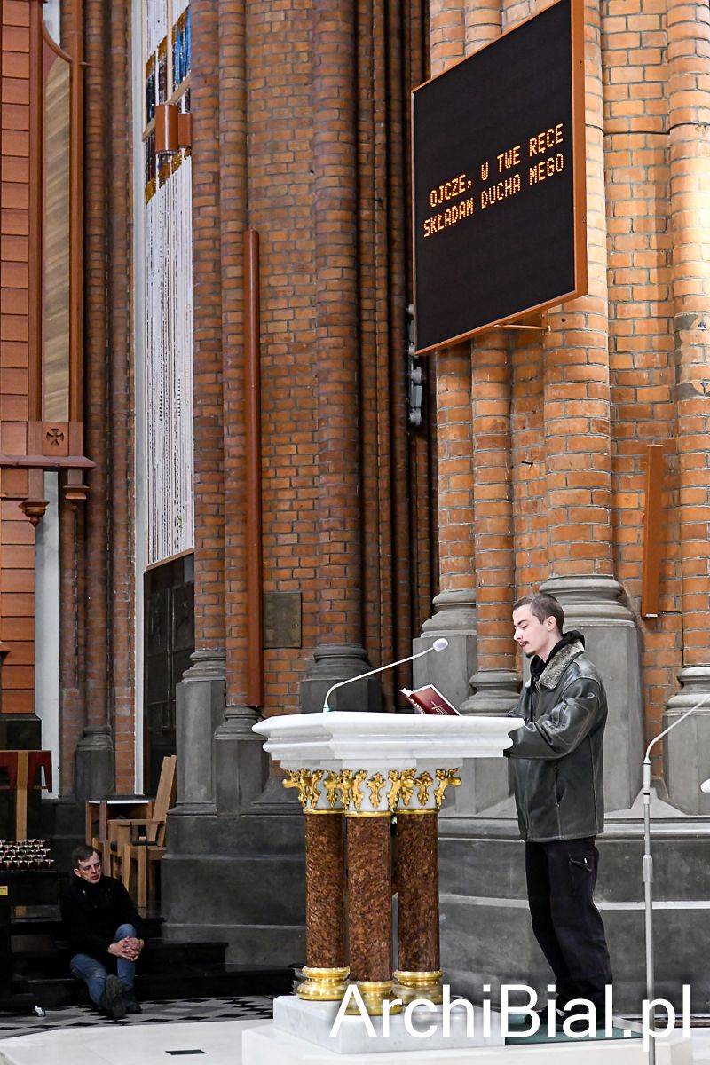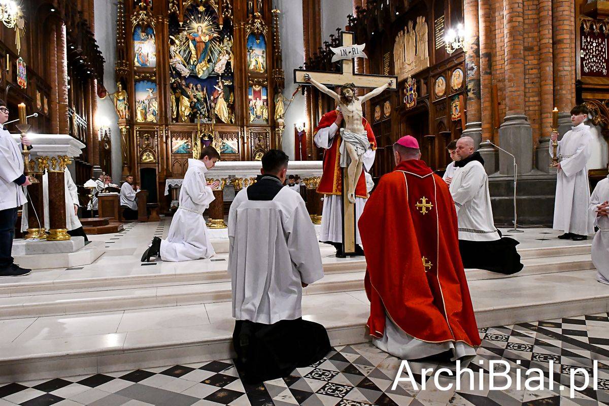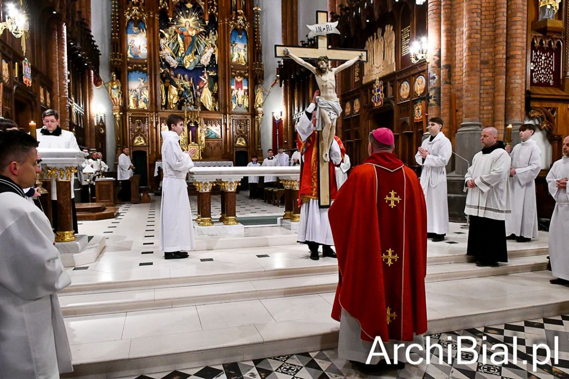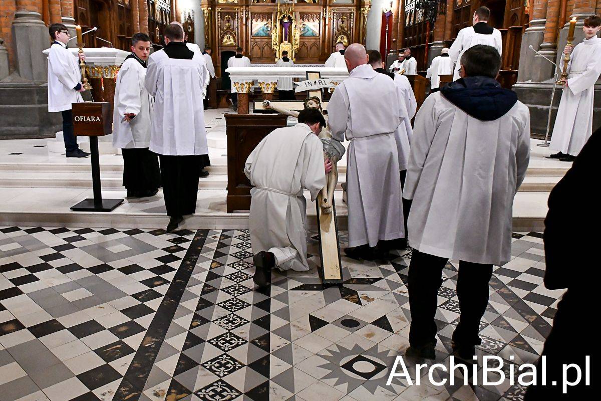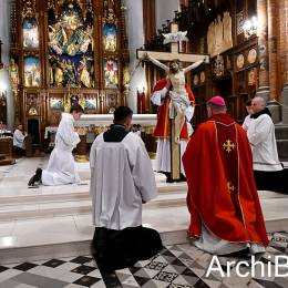 Zgodnie z wielowiekową tradycją w Wielki Piątek Kościół nie sprawuje Eucharystii, ale gromadzi się na sprawowanie Liturgii Męki Pańskiej. Składa się ona z kilku istotnych elementów: Liturgii Słowa z opisem Męki Pańskiej według św. Jana, rozbudowanej modlitwy powszechnej, adoracji Krzyża oraz Komunii świętej udzielanej z darów uprzednio konsekrowanych w Wielki Czwartek. Naszej modlitwie przewodniczył abp Józef Guzdek. Śpiewy prowadziła Schola Adonai.