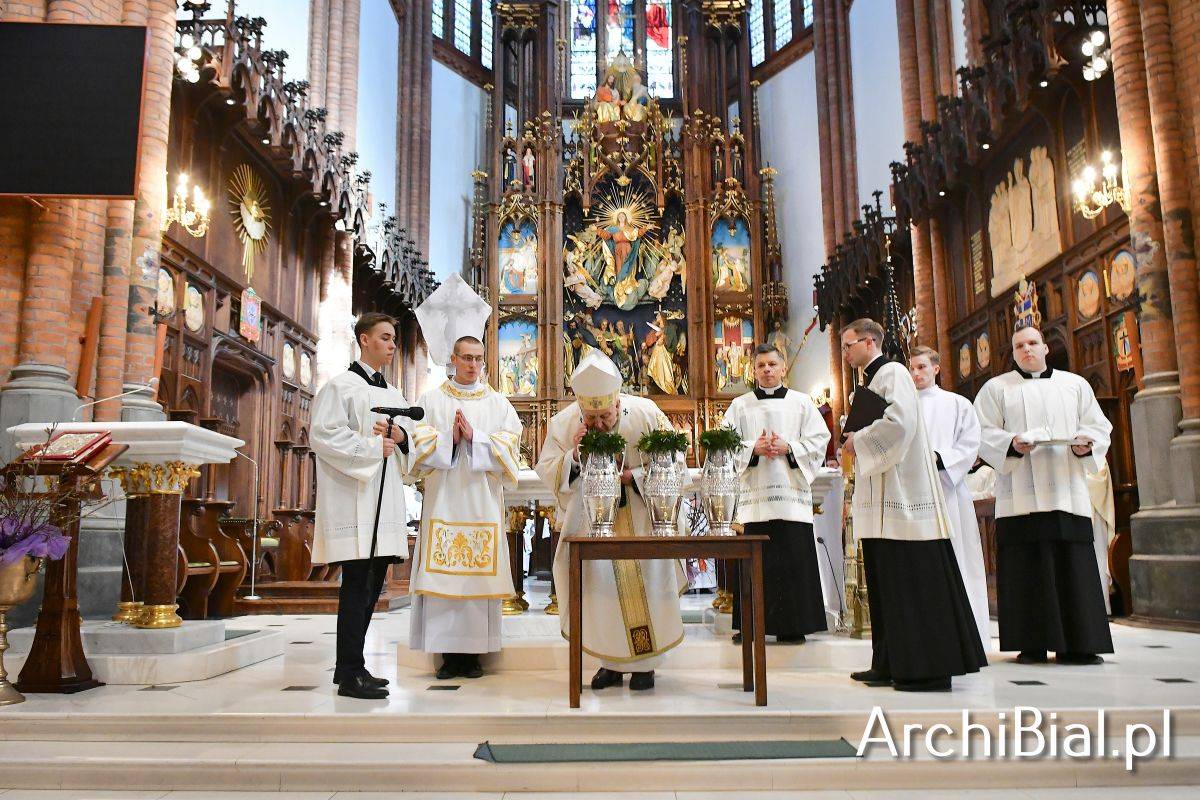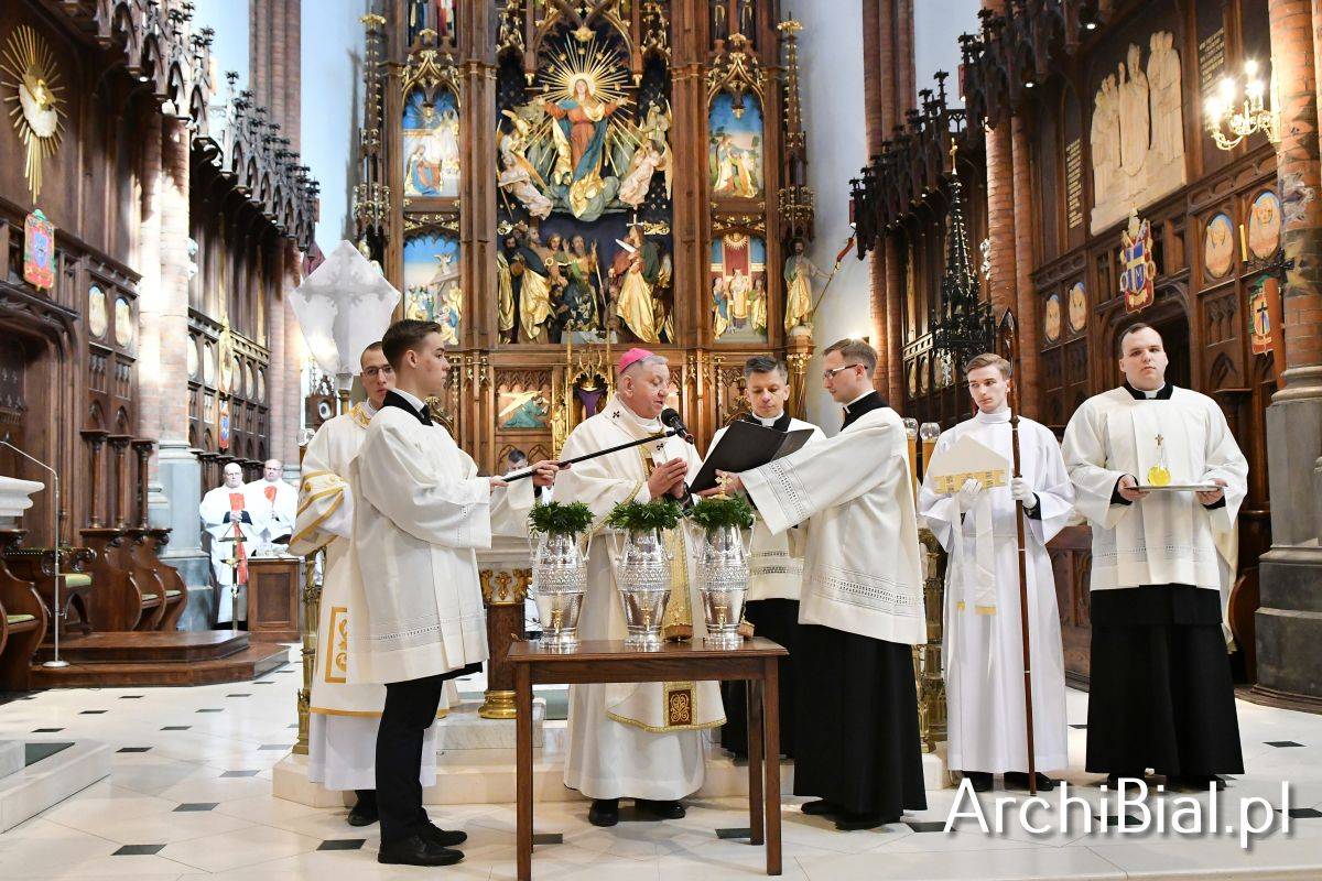 W wielkoczwartkowe przedpołudnie Arcybiskup Józef Guzdek przewodniczył w Archikatedrze uroczystej Mszy Krzyżma, koncelebrując Eucharystię wraz ze swoim Prezbiterium. Podczas tej Mszy świętej kapłani odnowili przyrzeczenia złożone w dniu święceń kapłańskich oraz zostało konsekrowane Krzyżmo święte oraz Olej Chorych i Olej Katechumenów. Święte oleje posłużą do sprawowania sakramentów i sakramentaliów przez cały najbliższy rok.