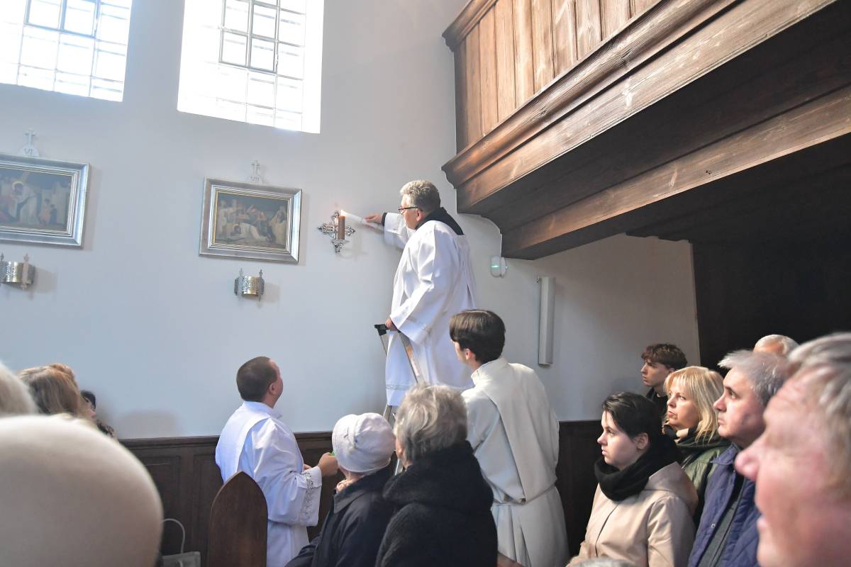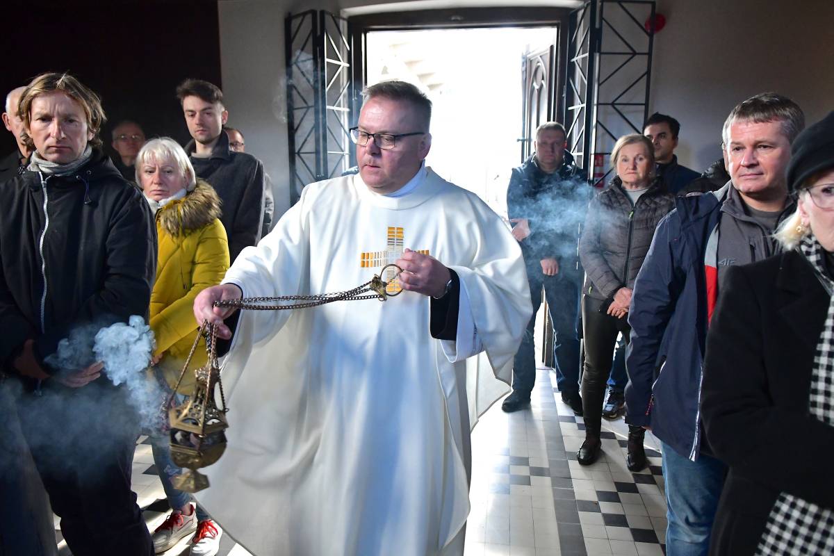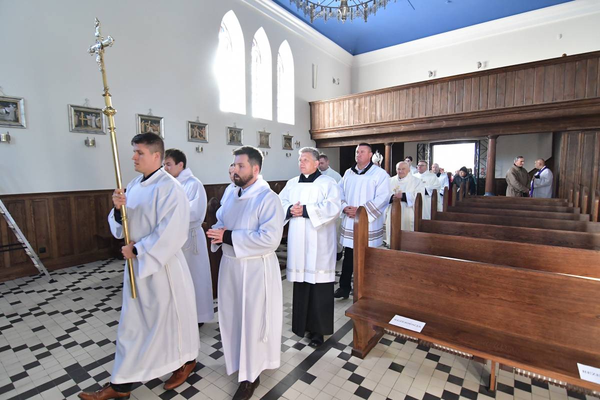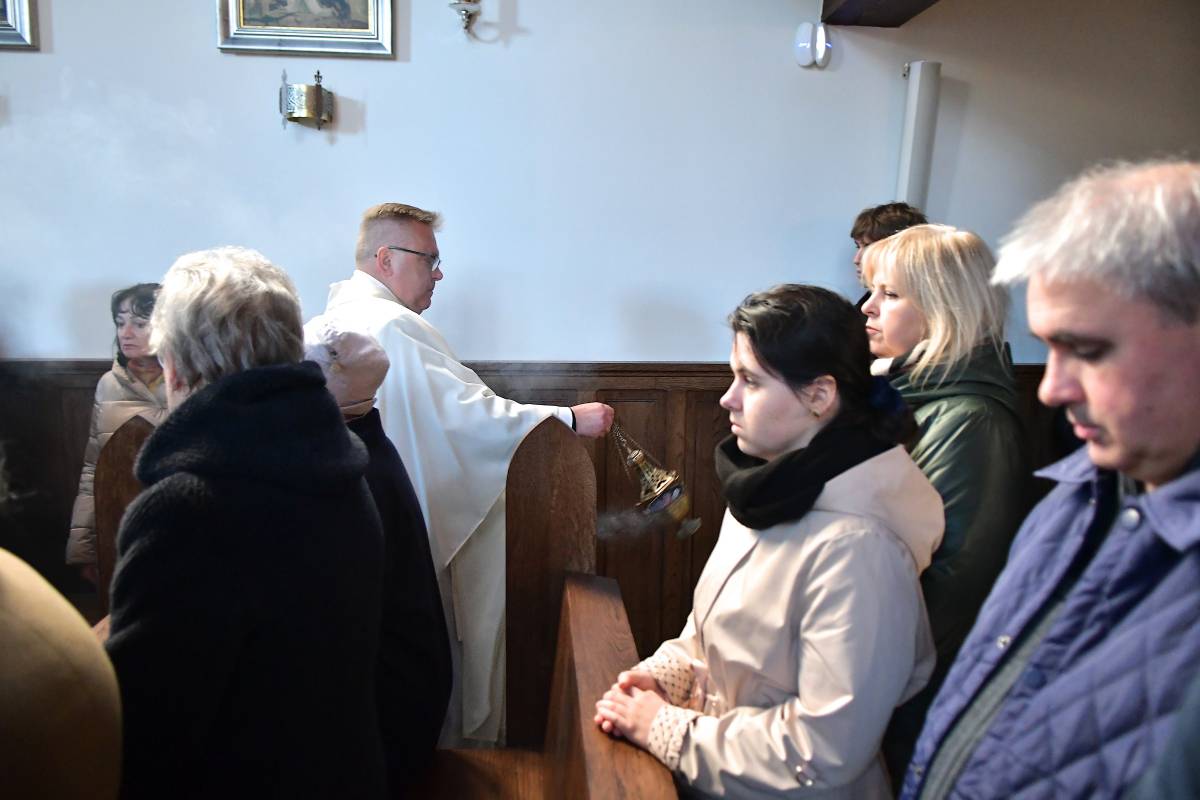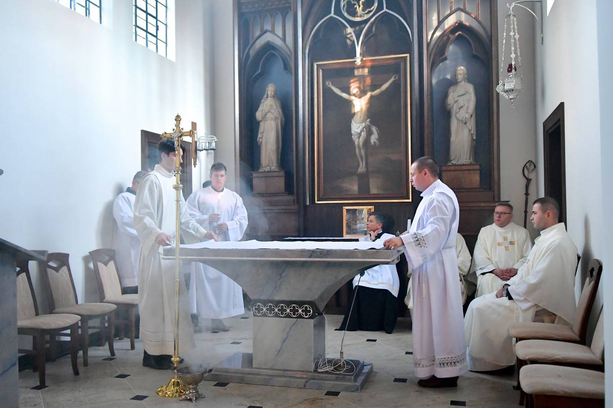 Rozbudowany obrzęd okadzenia ołtarza i świątyni oraz zapalenie świec ołtarzowych i świec przy „zacheuszkach” wprowadziły uczestników Eucharystii w dalsze przeżywanie Mszy św. Ołtarz został nakryty obrusem, udekorowany kwiatami i przygotowany do sprawowania liturgii.