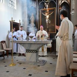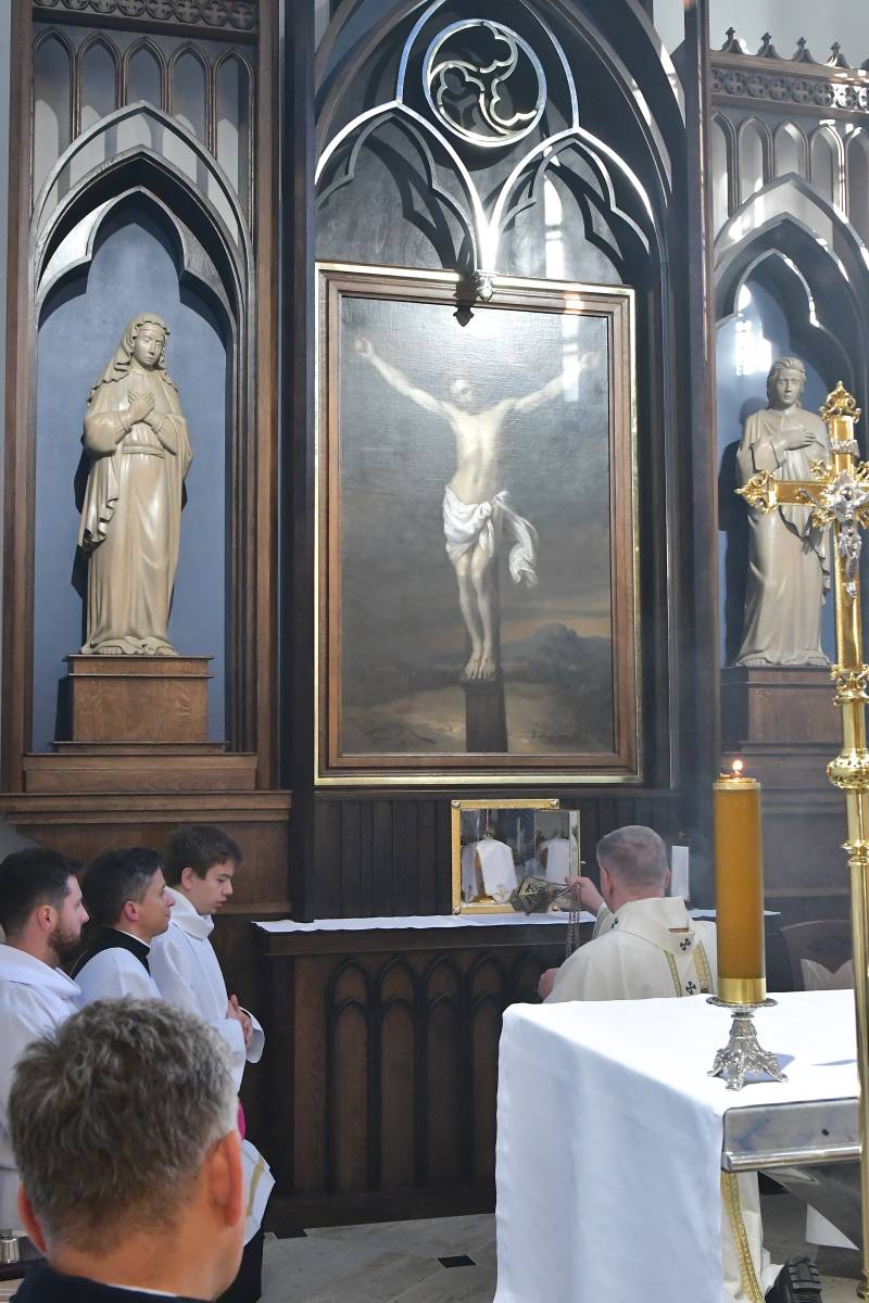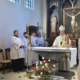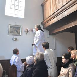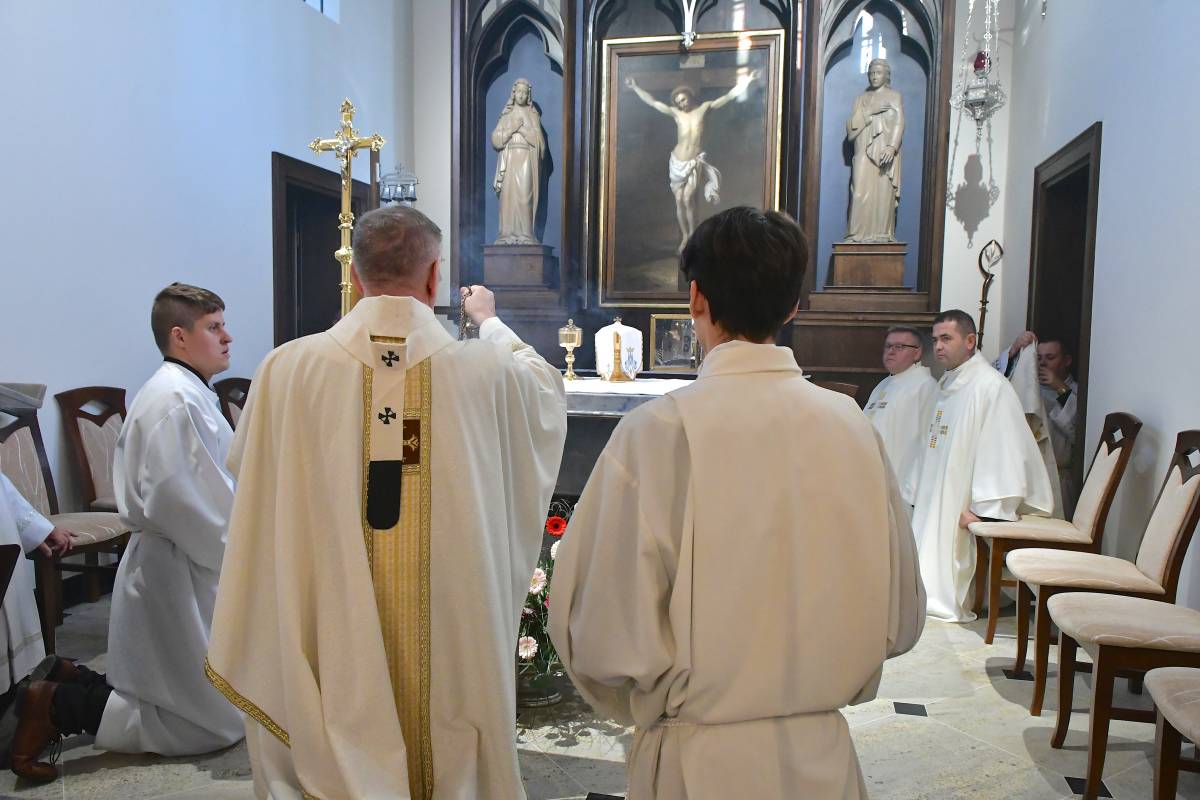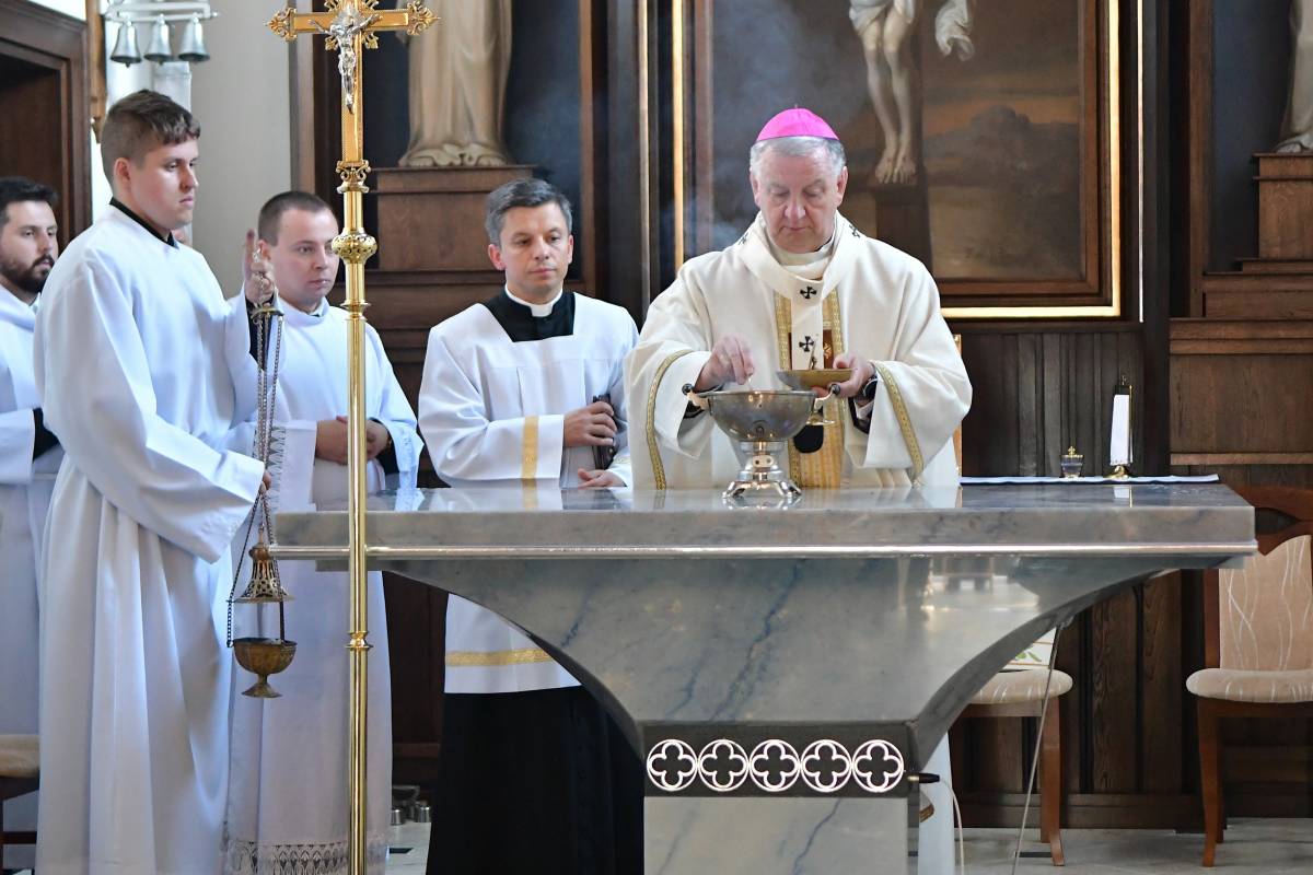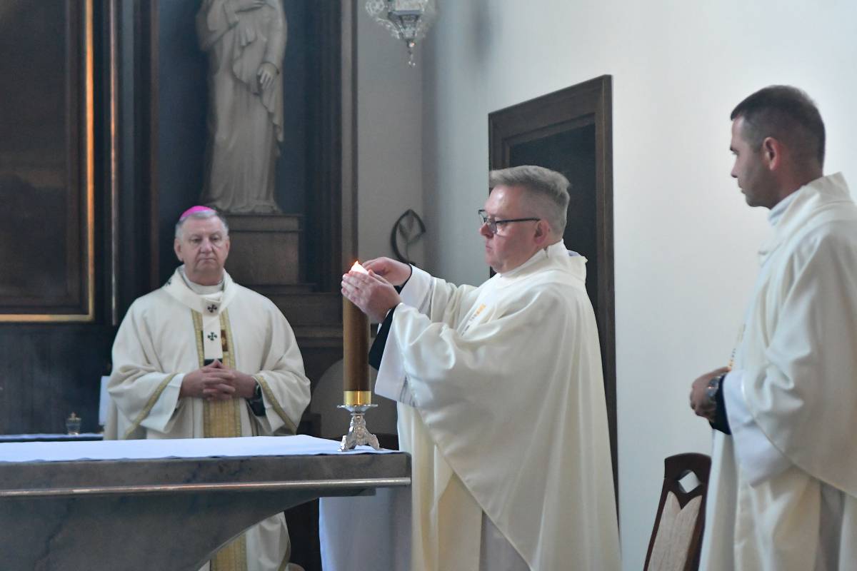 Rozbudowany obrzęd okadzenia ołtarza i świątyni oraz zapalenie świec ołtarzowych i świec przy „zacheuszkach” wprowadziły uczestników Eucharystii w dalsze przeżywanie Mszy św. Ołtarz został nakryty obrusem, udekorowany kwiatami i przygotowany do sprawowania liturgii.