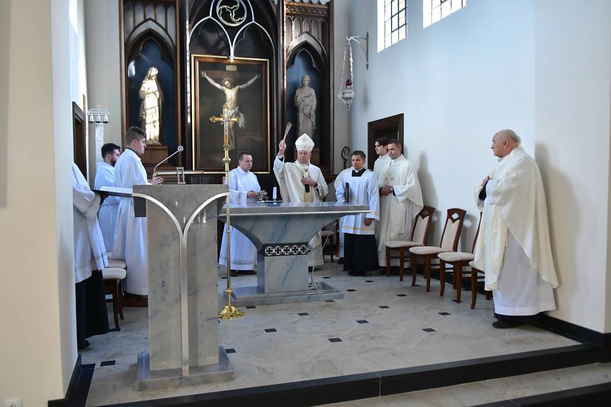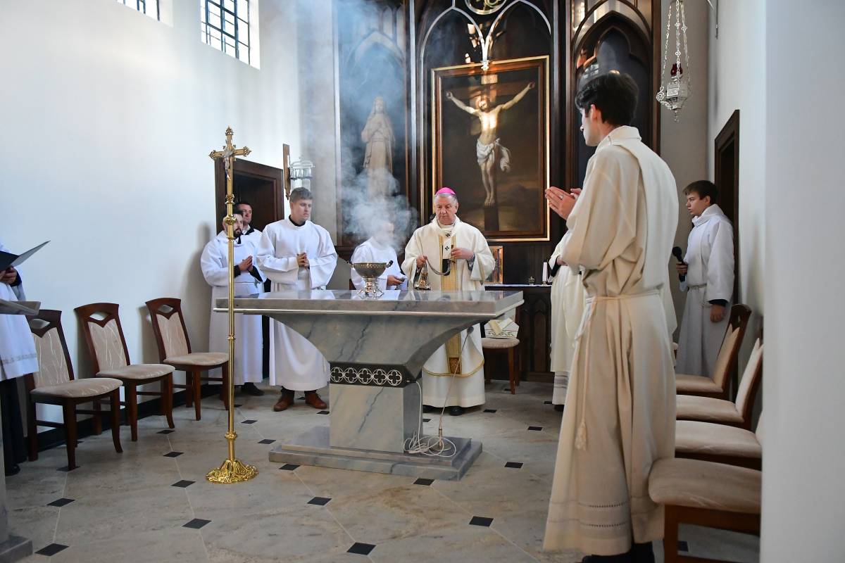 Podkreślił, że mimo trudności, towarzyszyło im Boże prowadzenie i przekonanie, że „trzeba Bogu zaufać, a On zrobi resztę”. Szczególne podziękowania skierował do abp. Józefa Guzdka za troskę, zainteresowanie postępem prac i dzisiejsze poświęcenie kaplicy. Dziękował projektantom, konserwatorom, wykonawcom, stolarzom i rzeźbiarzom, wymieniając nazwiska osób zaangażowanych w remont. Wspomniał też o anonimowym darczyńcy, dzięki któremu prace mogły się rozpocząć. „Radosnego dawcę miłuje Bóg i z pewnością tę ofiarność wynagrodzi” – dodał.