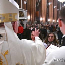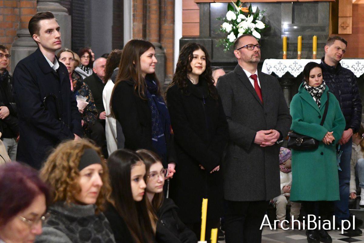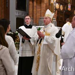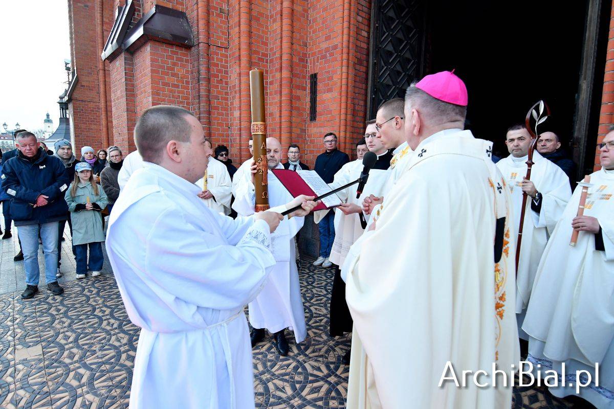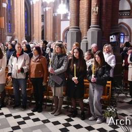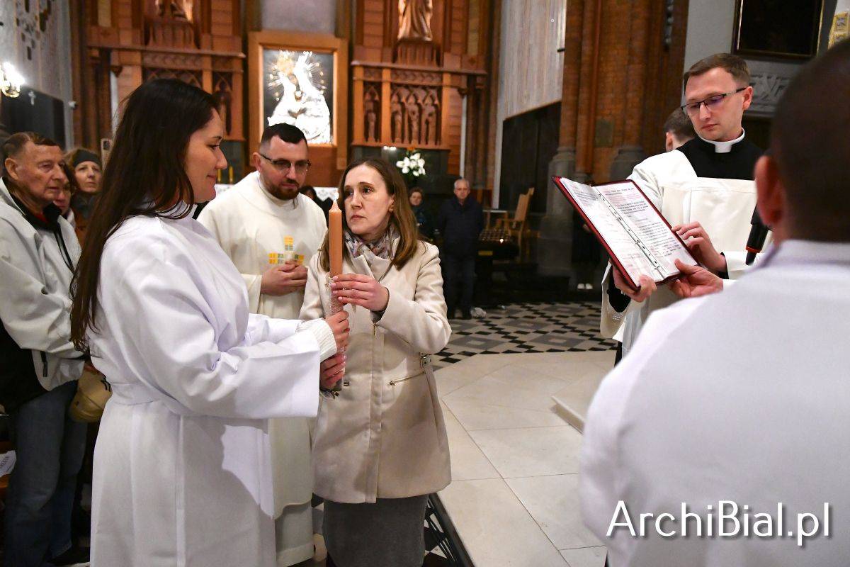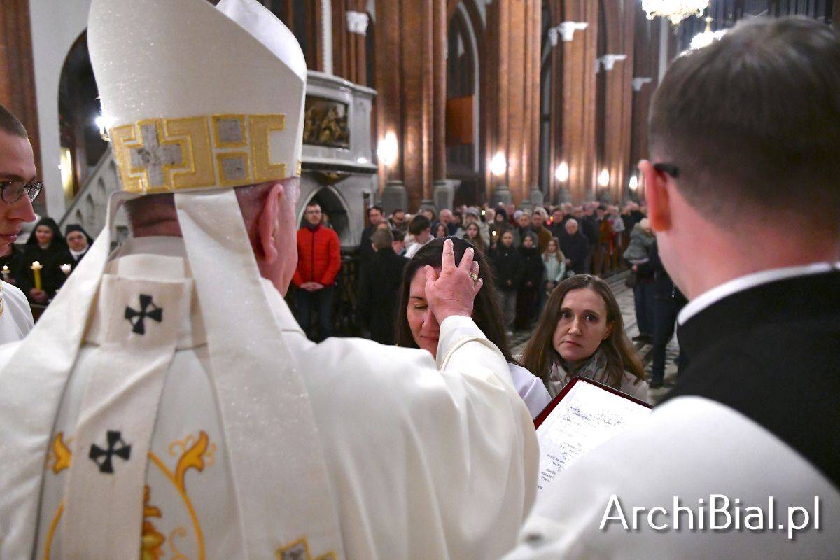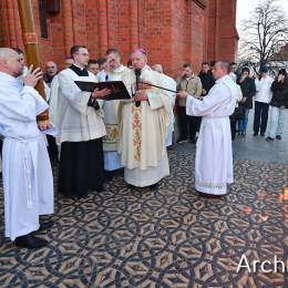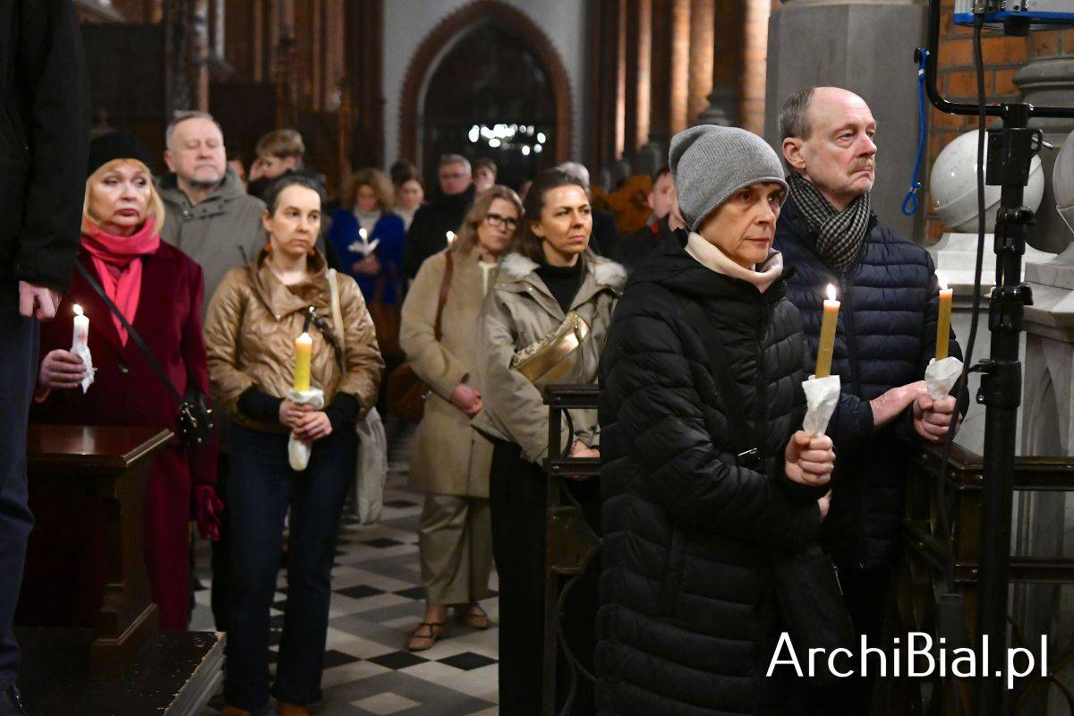 Wielkosobotnim wieczorem zgromadziliśmy się w Bazylice Archikatedralnej aby rozpocząć obchód Świąt Paschalnych uroczystą Wigilią Paschalną. Składała się ona z kilku istotnych elementów: poświęcenia ognia i zapalenia świecy paschalnej, śpiewu uroczystego orędzia wielkanocnego, rozbudowanej Liturgii Słowa, opowiadającej historię zbawienia, Liturgii Chrzcielnej podczas której katechumenka otrzymała sakramenty chrztu i bierzmowania, a wszyscy zgromadzeni odnowiliśmy przyrzeczenia chrzcielne oraz Komunii Świętej wielkanocnej. Śpiew podczas liturgii prowadziły połączone schole parafialne – Winnica i Adonai.