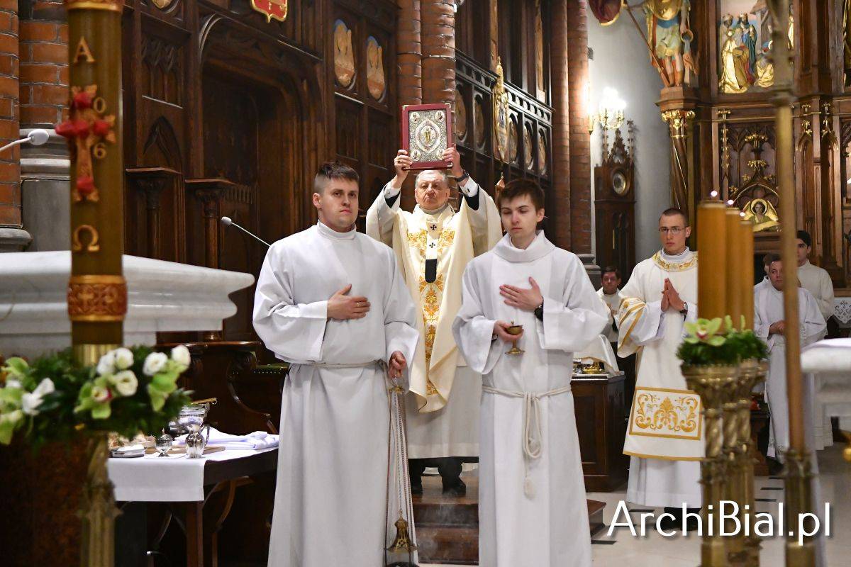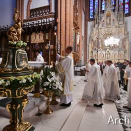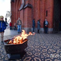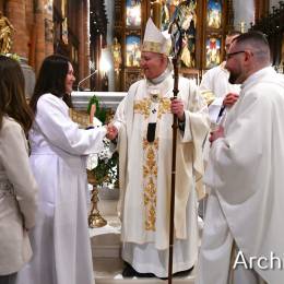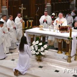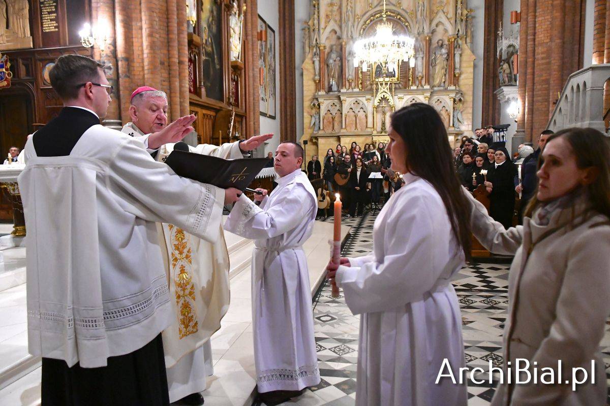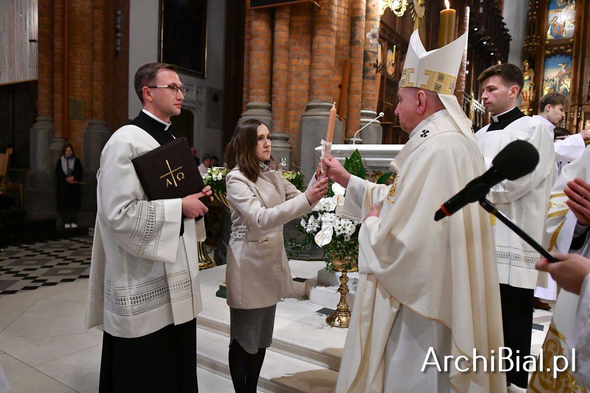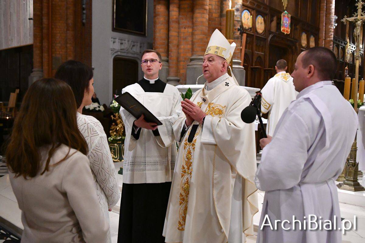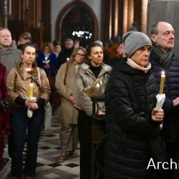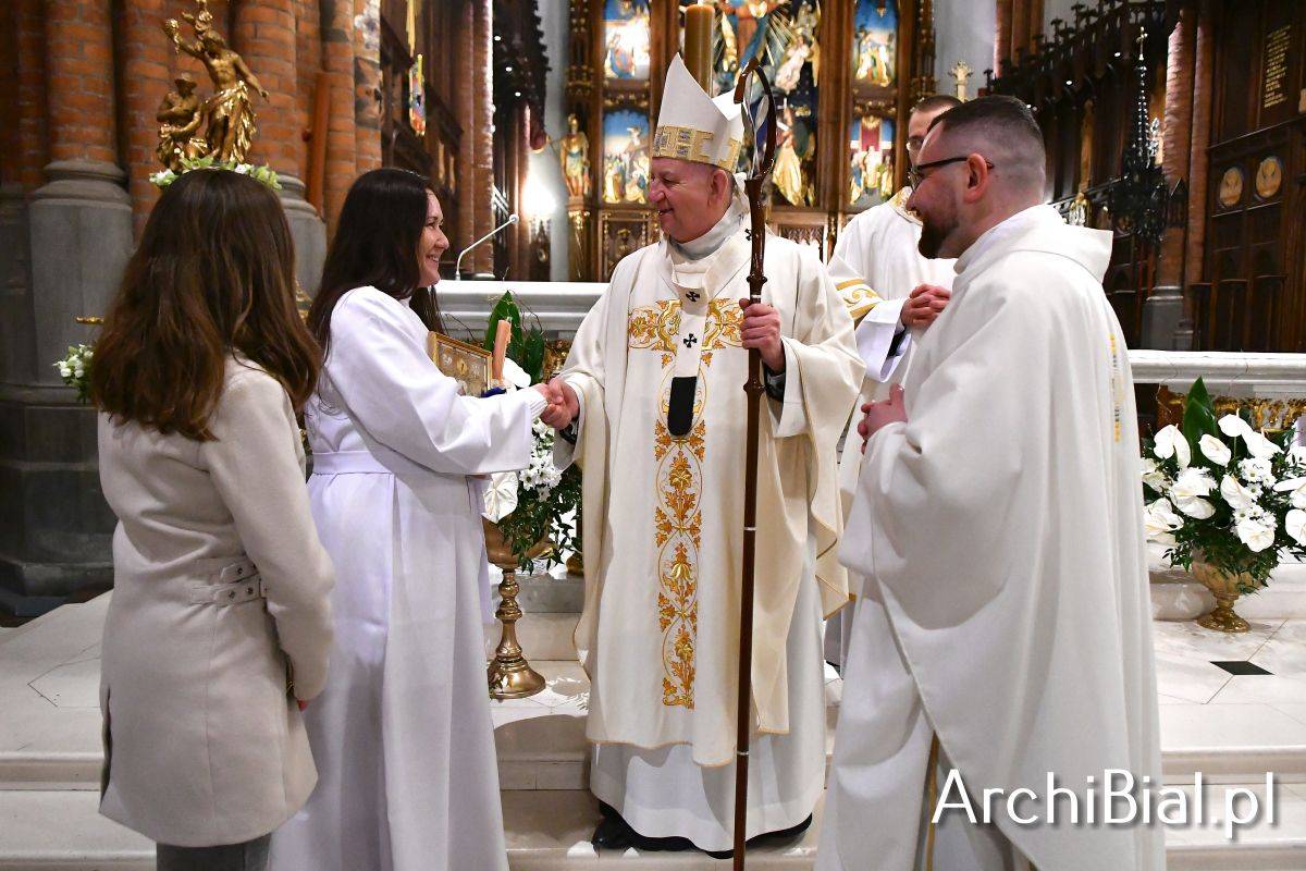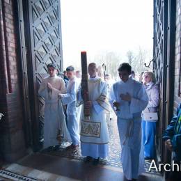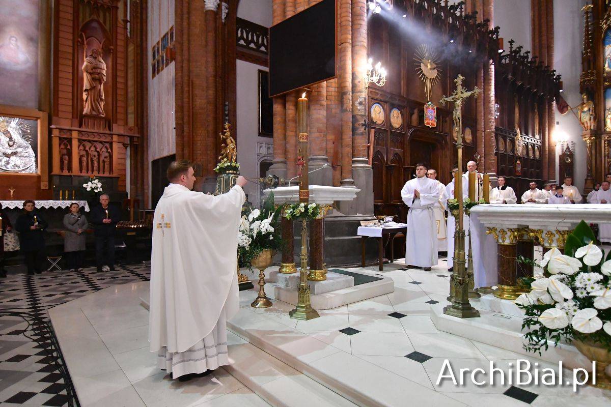 Wielkosobotnim wieczorem zgromadziliśmy się w Bazylice Archikatedralnej aby rozpocząć obchód Świąt Paschalnych uroczystą Wigilią Paschalną. Składała się ona z kilku istotnych elementów: poświęcenia ognia i zapalenia świecy paschalnej, śpiewu uroczystego orędzia wielkanocnego, rozbudowanej Liturgii Słowa, opowiadającej historię zbawienia, Liturgii Chrzcielnej podczas której katechumenka otrzymała sakramenty chrztu i bierzmowania, a wszyscy zgromadzeni odnowiliśmy przyrzeczenia chrzcielne oraz Komunii Świętej wielkanocnej. Śpiew podczas liturgii prowadziły połączone schole parafialne – Winnica i Adonai.