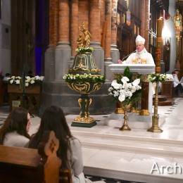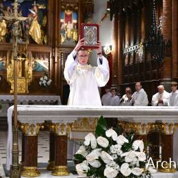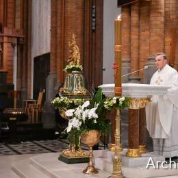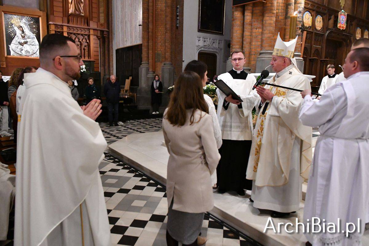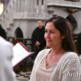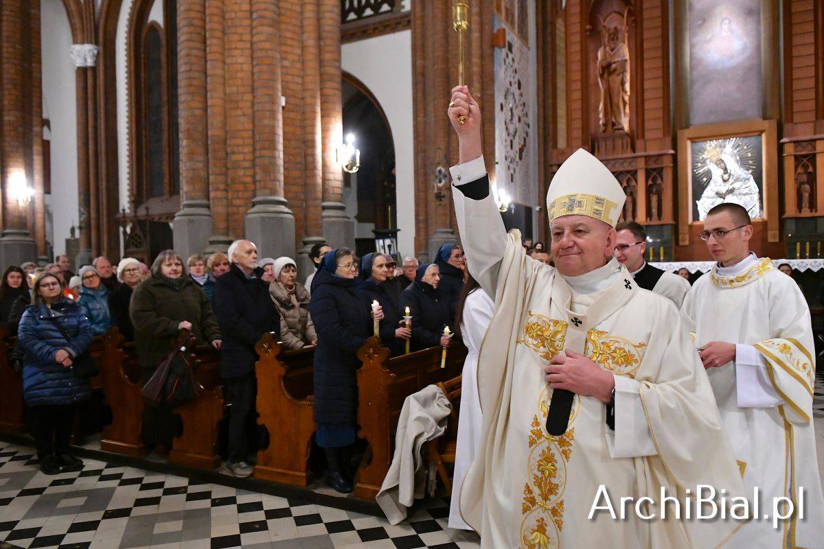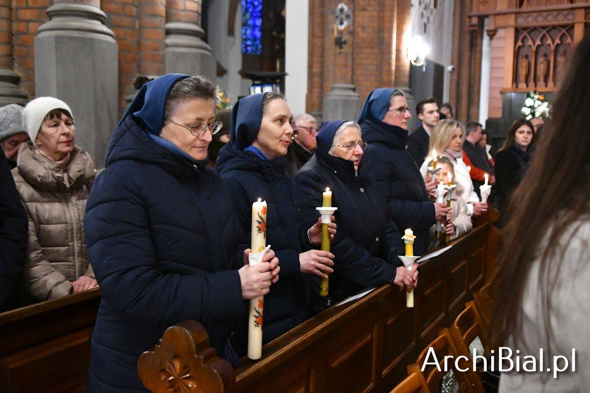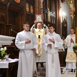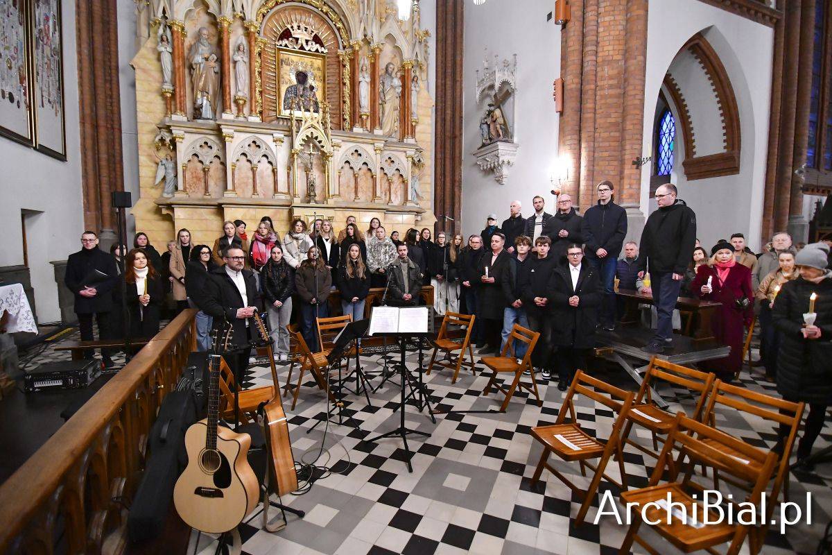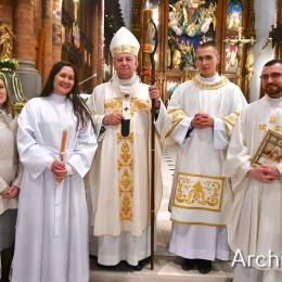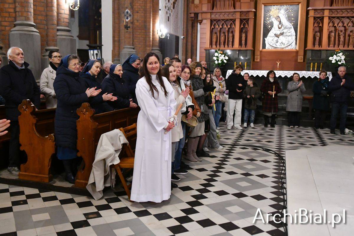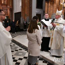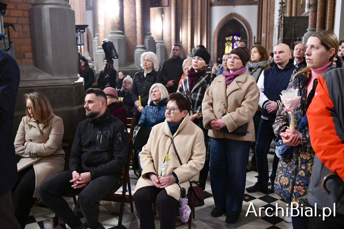 Wielkosobotnim wieczorem zgromadziliśmy się w Bazylice Archikatedralnej aby rozpocząć obchód Świąt Paschalnych uroczystą Wigilią Paschalną. Składała się ona z kilku istotnych elementów: poświęcenia ognia i zapalenia świecy paschalnej, śpiewu uroczystego orędzia wielkanocnego, rozbudowanej Liturgii Słowa, opowiadającej historię zbawienia, Liturgii Chrzcielnej podczas której katechumenka otrzymała sakramenty chrztu i bierzmowania, a wszyscy zgromadzeni odnowiliśmy przyrzeczenia chrzcielne oraz Komunii Świętej wielkanocnej. Śpiew podczas liturgii prowadziły połączone schole parafialne – Winnica i Adonai.